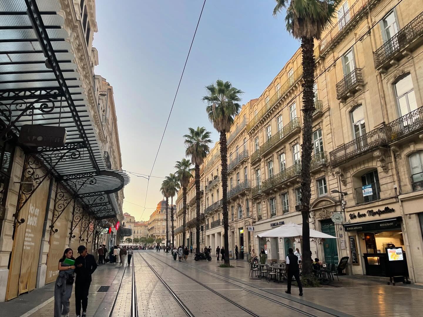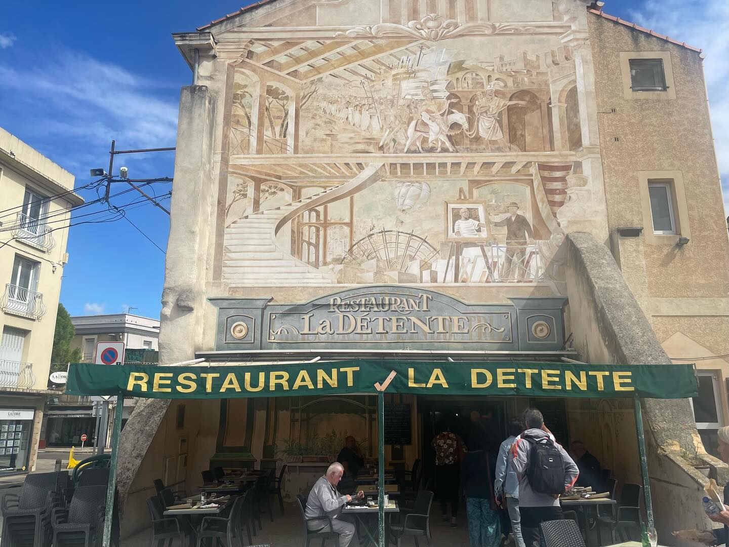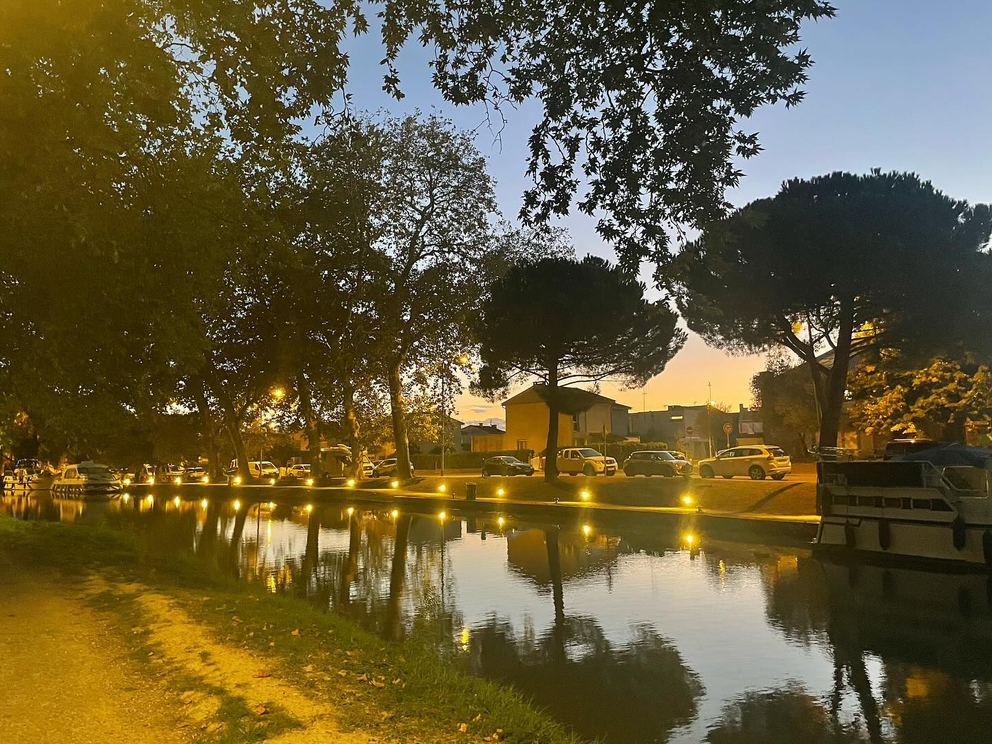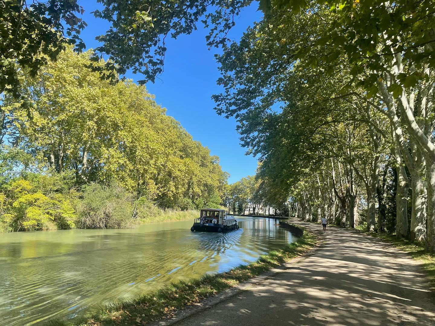 On Sunday in France, everything is closed. We went to the flea market in Montpellier. On Monday we headed south to Sete along the coast. Sete is the end of the Via Rhona, and we switched to the Canal du Midi trail, which will take us to Toulouse. We made it as far as Béziers, where we had some amazing North African food and found a really cool light installation in the park.