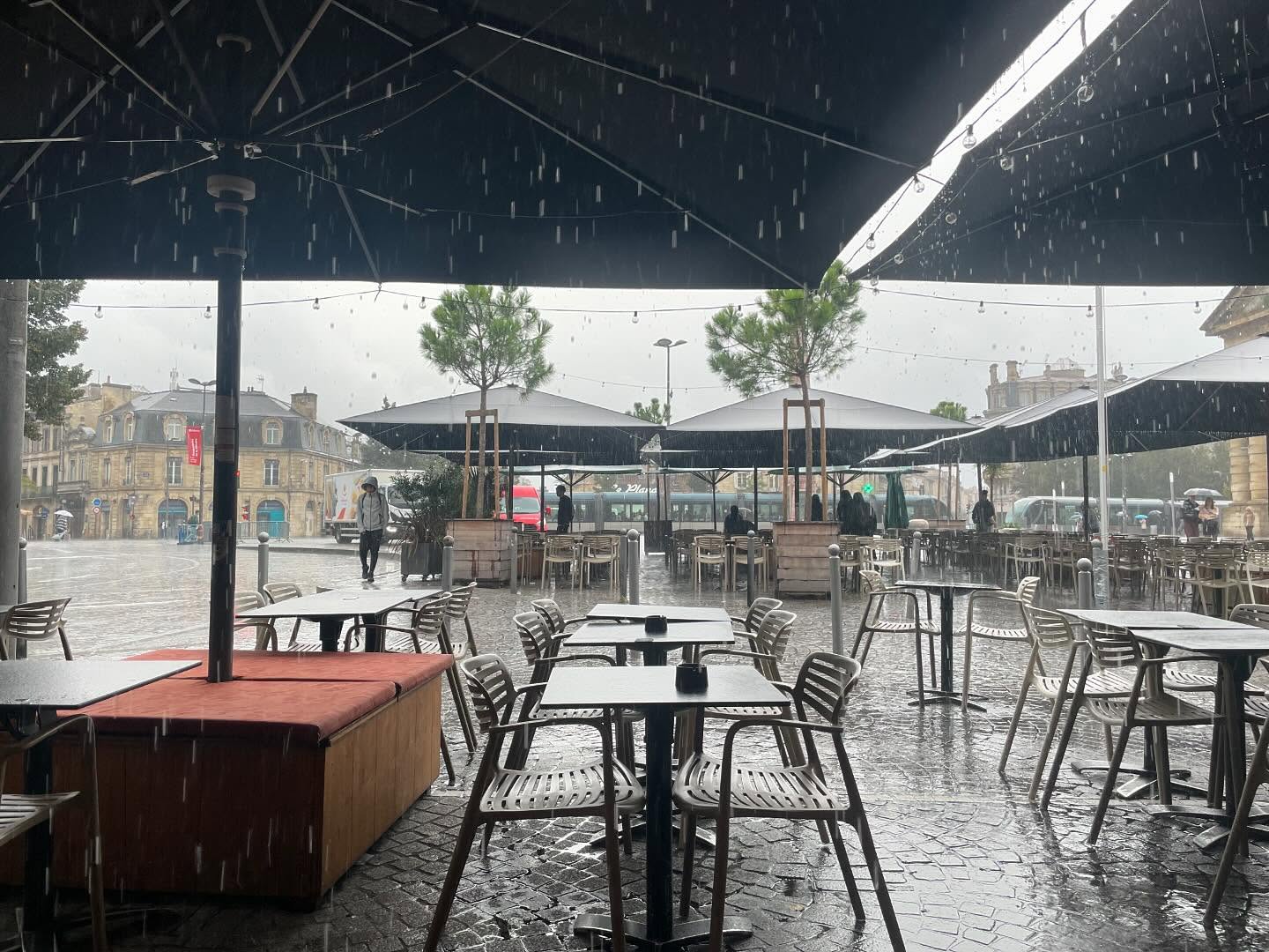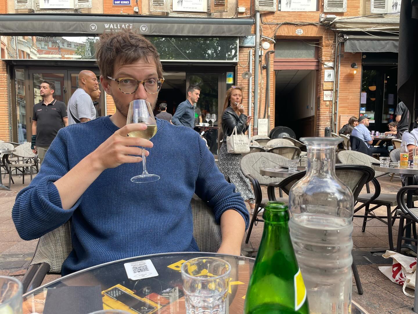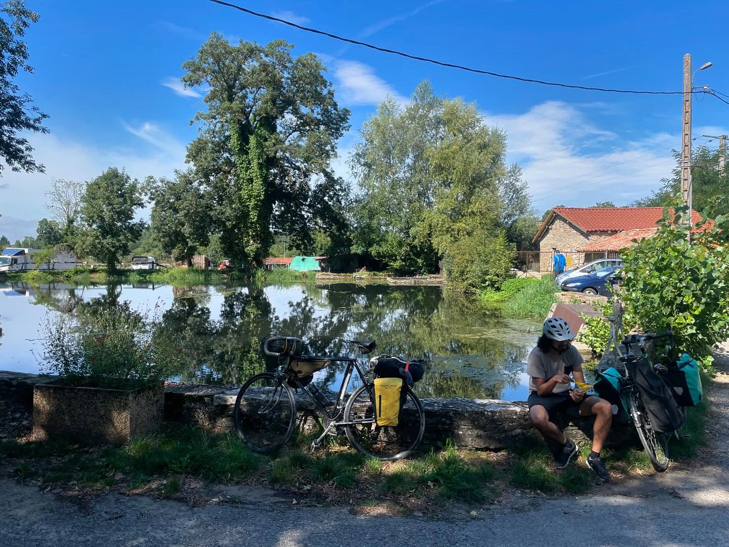 Sunday we started along a new canal, the Canal de Garrone, which shadows the Garrone River between Toulouse and Bordeaux. At a campground in Moissac a shirtless man covered in tattoos gave me two cans of corn and a can of tuna, explaining that his bottle of olive oil was stolen so he had no use for them. Monday, at lunch, we talked to an English widower named Bob, who told us a joke about chickens. Later we camped with some chickens in Sérignac-sur-Garrone. On Wednesday we finally left the canal and rode the Piste Roger Lapébie, a railway converted to a bike path, the rest of the way to Bordeaux. The last two nights my sleeping pad slowly leaked, and I woke up every hour or two to re-inflate it. After 750 miles we’re finally in Bordeaux, and the biking is done, the camping is done, thank god.