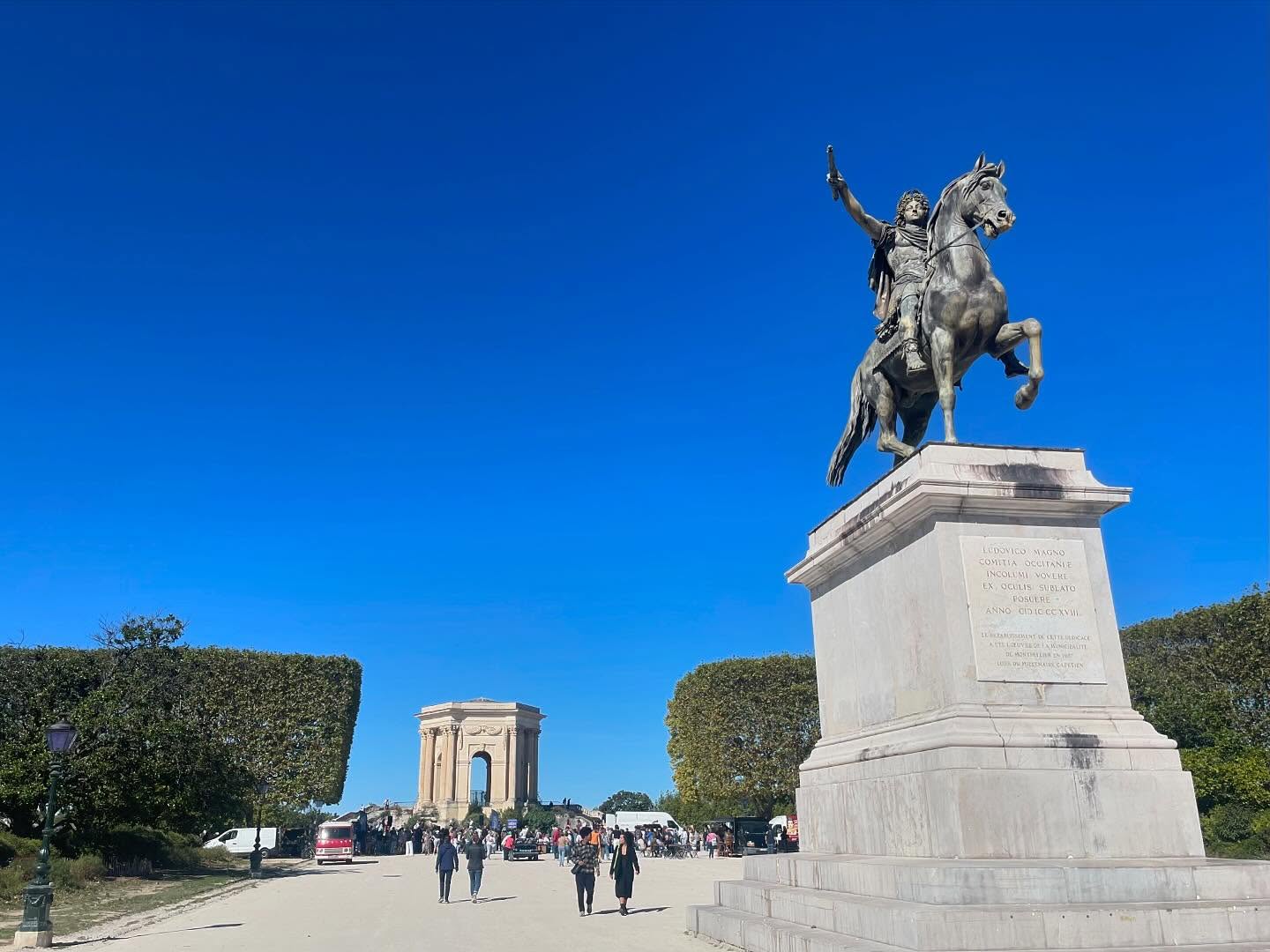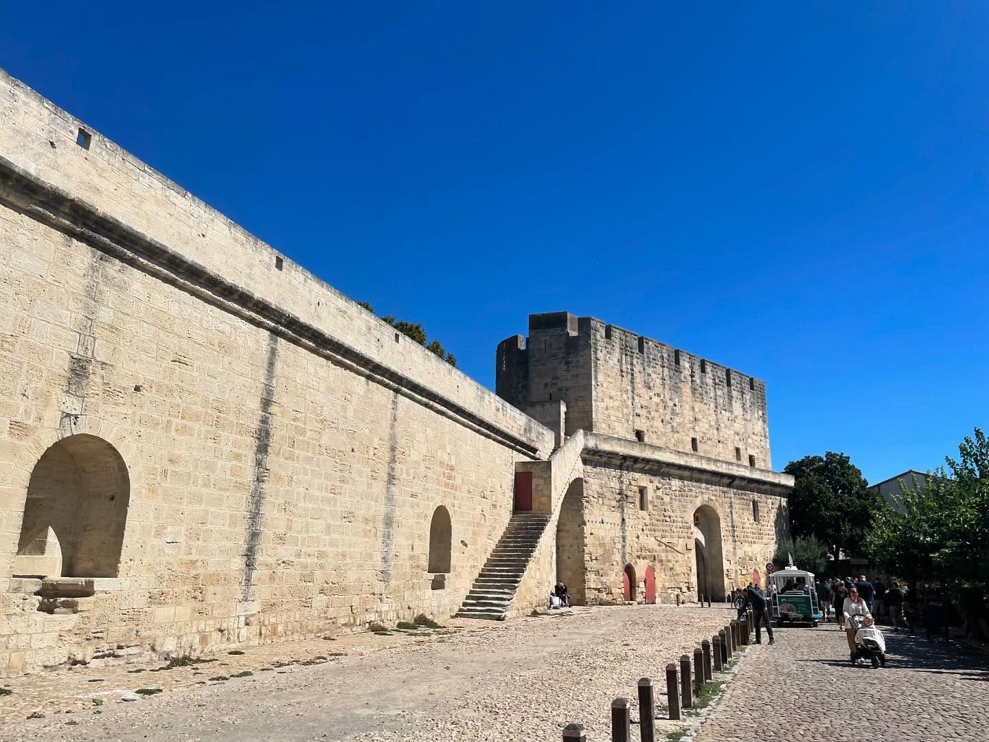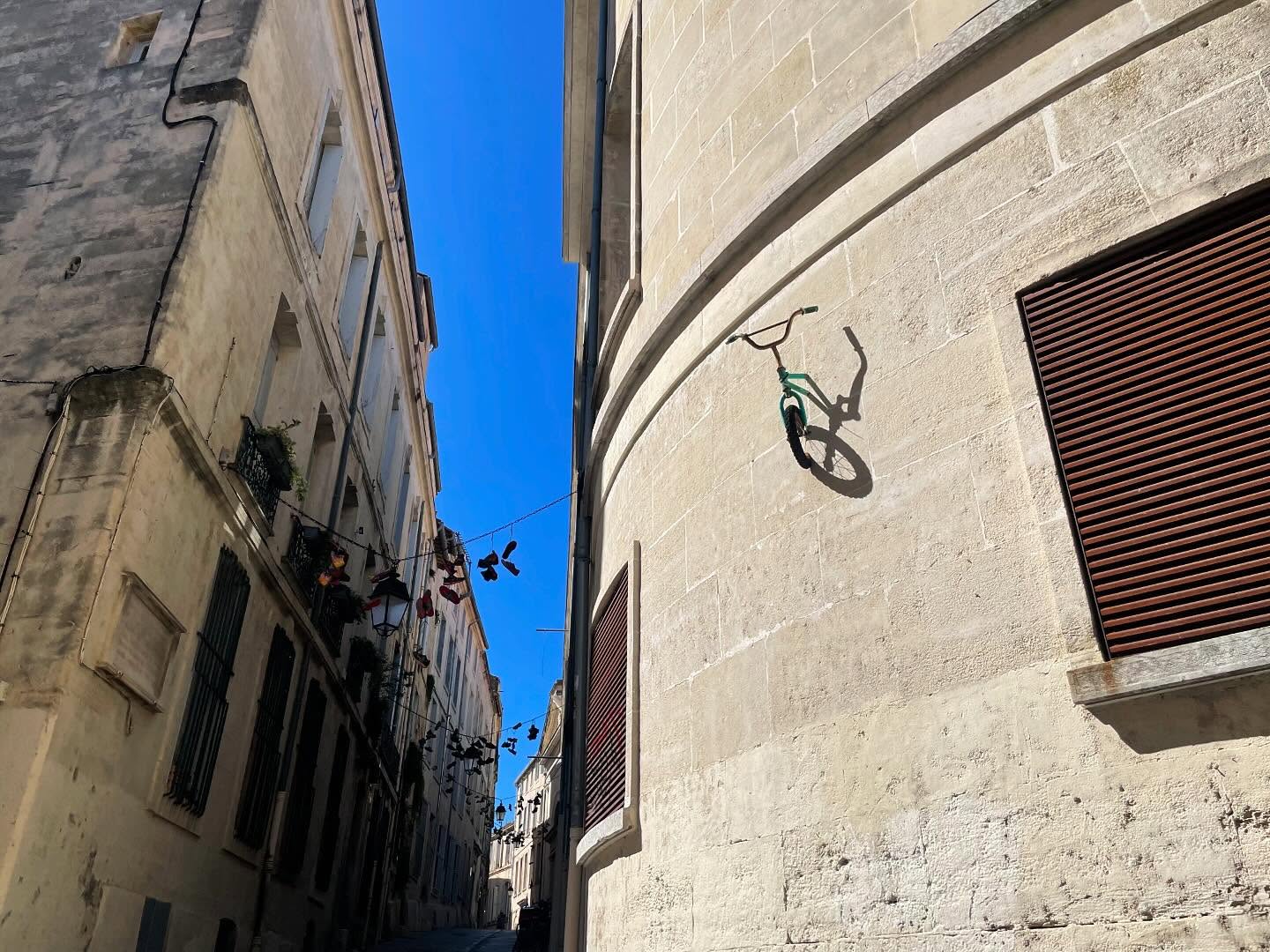 Friday we battled gusty crosswinds from Avignon to Saint-Gilles. Ranjan got a flat when I was too far ahead, but got help from another traveler. In Saint-Gilles the bartender at the local bar looked exactly like Freddie Mercury. We didn’t hear him sing. Saturday we had lunch in Aigues-Mortes, a little walled city with lots of touristy shops. I wonder what crumbling aspects of American towns will seem so cute in a thousand years. At Le Grande-Motte we stopped to take a dip in the Med. In the afternoon we reached Montpellier, had some duck breast with foie gras, and had a long rest.