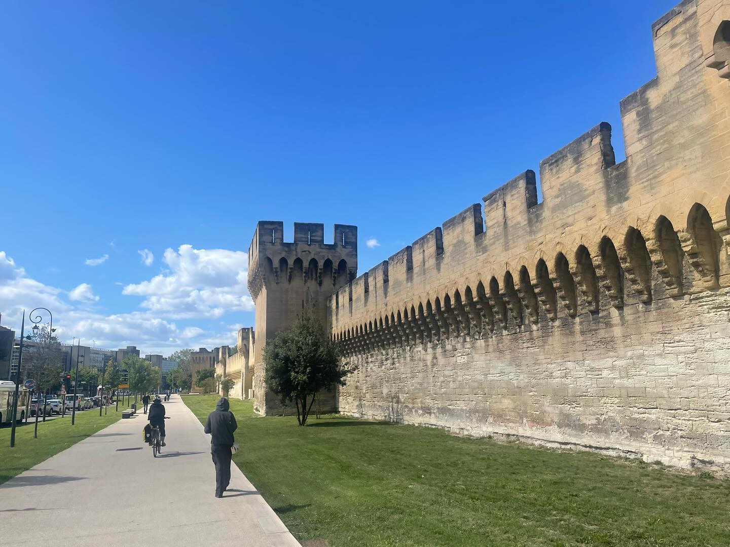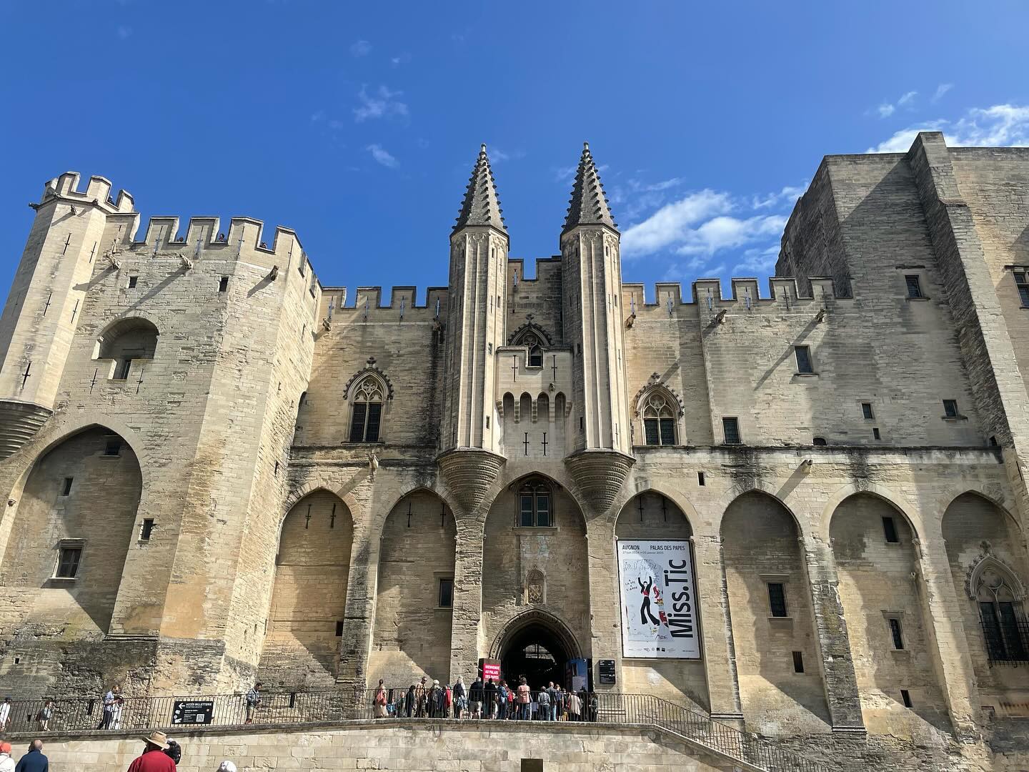 Wednesday we stopped by Montélimar, the capital of nougat. We had a very dry steak there. We’ve decided that France has no mediocre food—it’s either delicious or terrible. That night we stayed in a medieval-looking hotel overlooked by a castle-topped cliff. The steak at the local bar was amazing. On Thursday, we stopped for lunch in Sorgues, where we both ordered the “Andouile Aaaaa”. The waiter spoke little English but warned us that it was “strong”. It was probably the worst tasting thing I’ve ever eaten—a very traditional sausage full of who knows what animal parts. The taste stayed in our mouths for miles afterward. Later that day we arrived in Avignon, the old seat of the Catholic Church (half of it, anyway). The pope palace was pretty interesting.