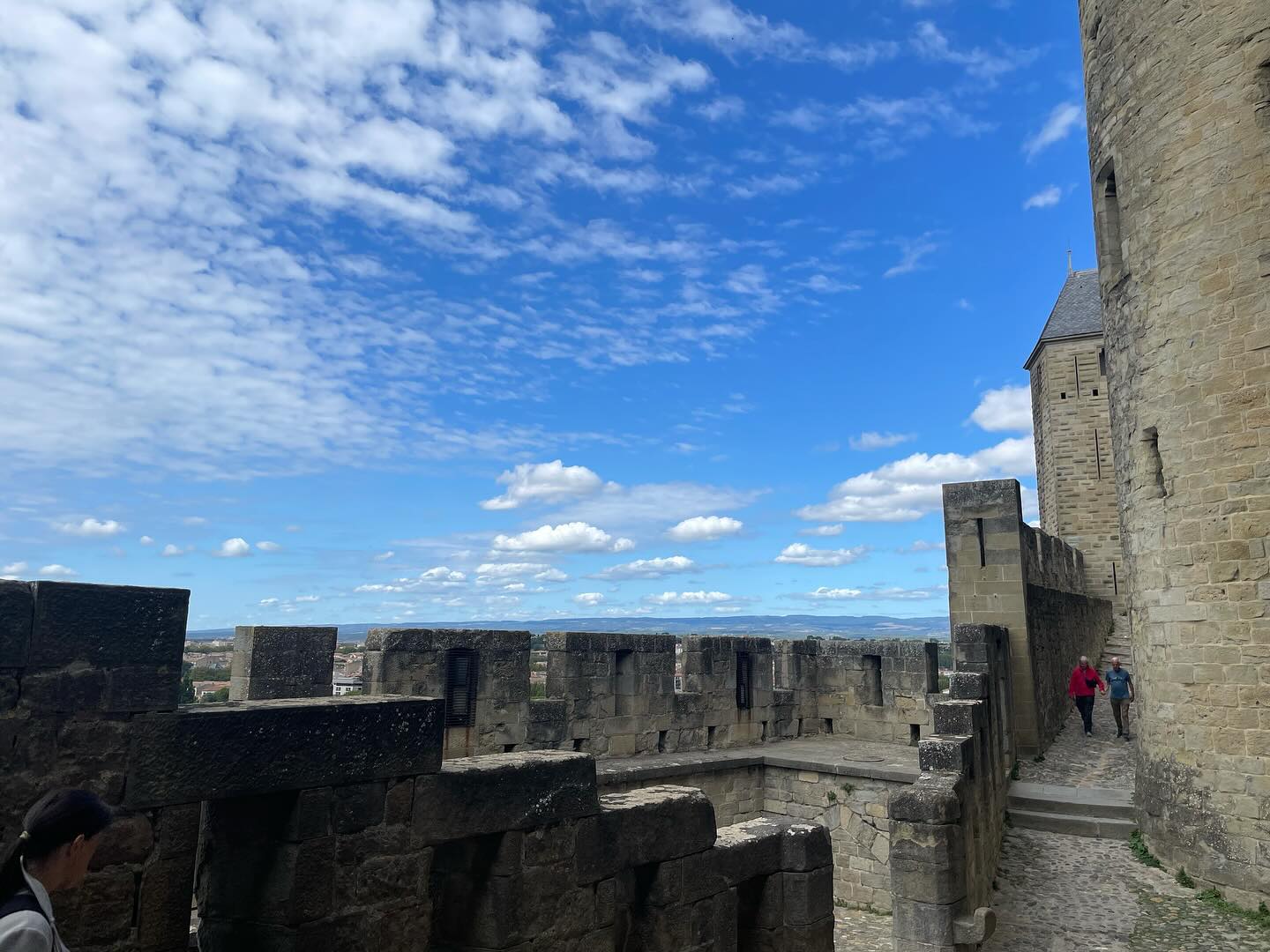 From Béziers, we continued along the Canal du Midi trail, which runs right along the canal. We quickly abandoned the trail, though, since it’s all gravel. Instead we rode along winding roads through farms and vineyards. Tuesday night we stopped at a village called Homps, but found the hotels full. We camped in the park at the town entrance. Wednesday we visited the castle at Carcassonne and rode on to Castelnaudary. We’re learning that hotels along the canal sell out frequently, so we’ve started booking them further in advance. There seem to be a lot of English tourists that rent boats to take along the canal—we’ve seen more than one inexperienced sailor badly navigating the tiny locks. We’re eating cassoulet, the local specialty, which is basically a hearty bean soup with various cooked meats. Mine needed more salt.