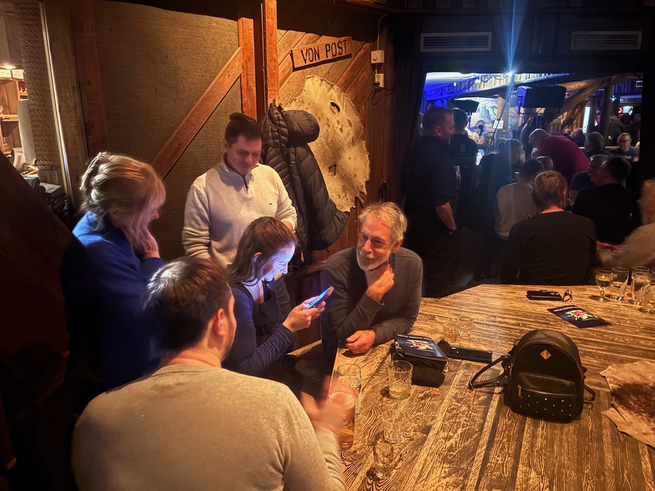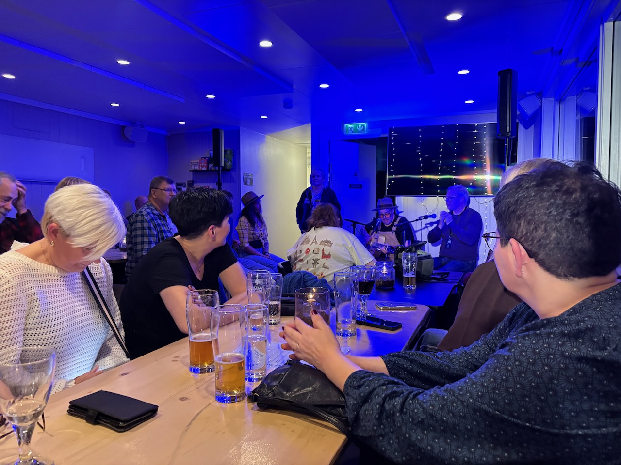 Sunday night we went to see the final show of the blues festival at a bar called Kroa. It seemed like the whole town was crammed into the bar. Several bands performed different blues and rock covers. At one point, I was sitting next to one of the guitarists and his friend. As I was telling him how much I liked his set, I accidentally knocked his friend’s beer into her lap. I quickly grabbed some napkins for her, and Mike (Grant’s dad) gave her a beer meant for Grant. They were polite about it, but I saw her later wearing different pants. Another guitarist was from Nashville. His first time in Svalbard was in 2022, when he flew in last minute to replace a musician who had a heart attack.
