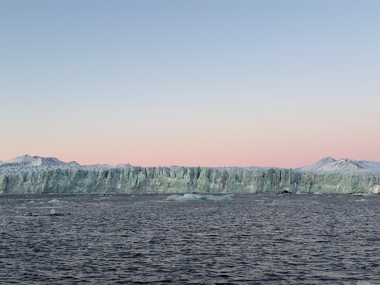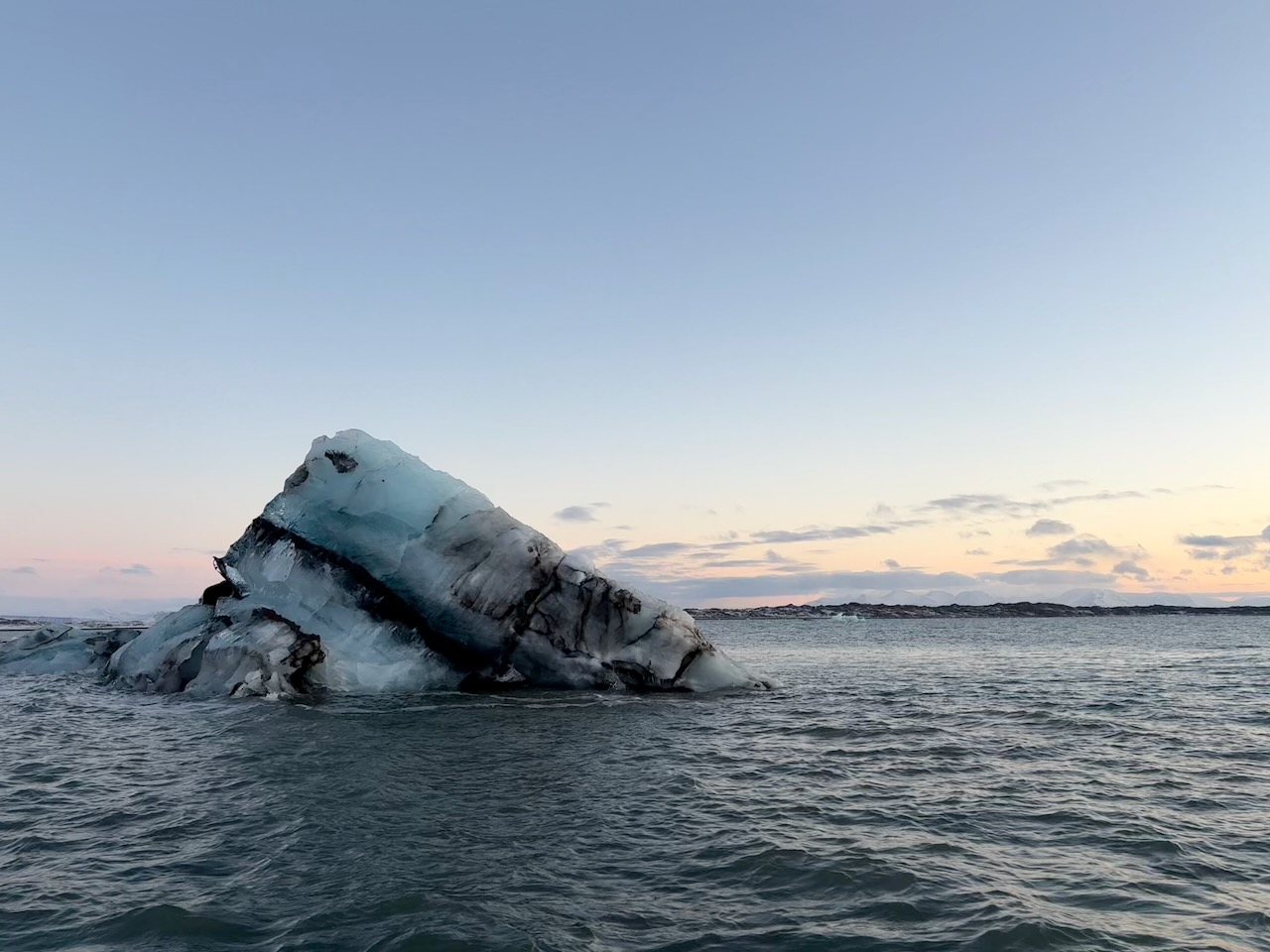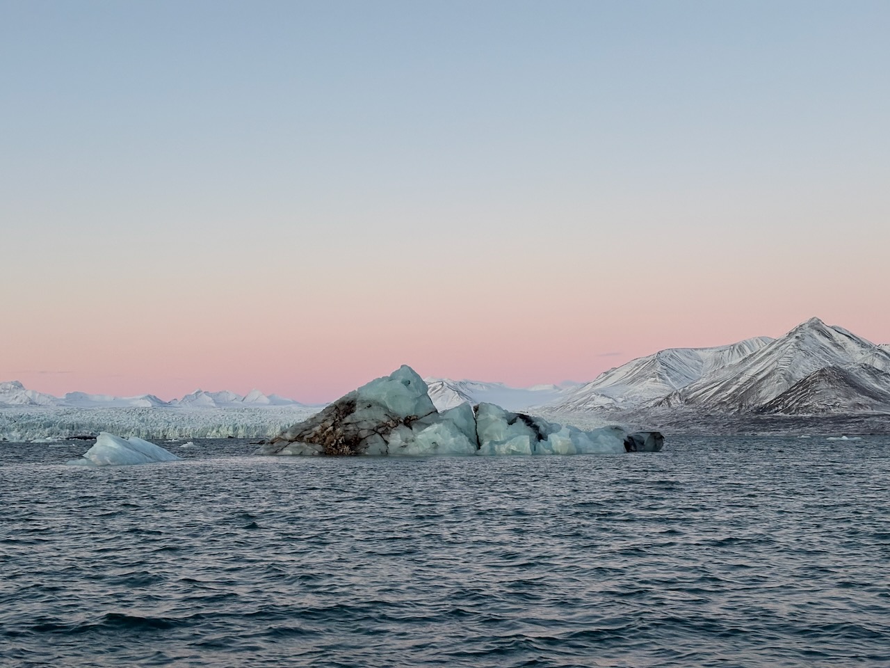 Saturday we got up early for a boat tour. At the “base camp” we donned heavy overalls, extra socks, boots, mittens, balaclavas, and goggles—practically space suits. We mounted saddle-style seats on a small 24-ft boat and rode an hour across the bay over choppy waves. At the other end we navigated small ice bergs, right up to the edge of a glacier. The tall cliffs of ice rose out of the sea, and you could see strata of denser, older blue-green and newer white. The ice popped as air bubbles in it broke free. At one point, a big chunk broke off and crashed into the sea, sounding like thunder. On the way back, we could almost see the sun over the mountains in the distance. So close to polar winter, the sun transitions seamlessly from sunrise to sunset, which lasts hours.