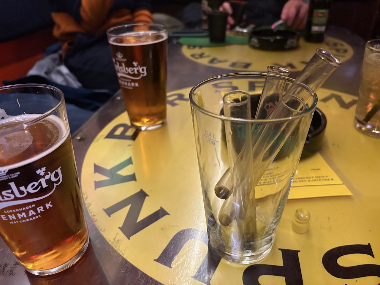 In the evening, Grant and I found a couple bars. Carlsburg is the PBR of Scandinavia: “probably the best beer in the world,” the bottle says. Alex and Chase joined us for cocktails, then a local bar called Spunk, where you can smoke inside. The bartender fixed us some of her homemade licorice shots, which were served in test tubes.