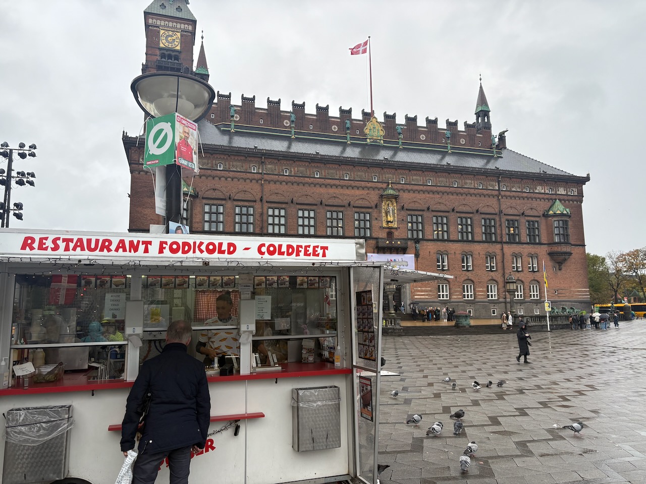 Wednesday morning we galvanized to clean the Airbnb for our departure. I didn’t get much sleep the night before. Then another arduous day of travel. Our layover in Oslo was longer than last time, and we got to see more of the beautiful airport. I fell asleep on a bench in the food court. When we got to Copenhagen, there was some confusion about how to take the train to the hotel, and we schlepped our luggage from track 2 to track 1, then back to track 2. While we waited for the train, I slept on the platform. We stuffed into the train for three stops, then walked to the hotel nearby. Copenhagen is rainy and not too cold right now, which feels like Seattle.